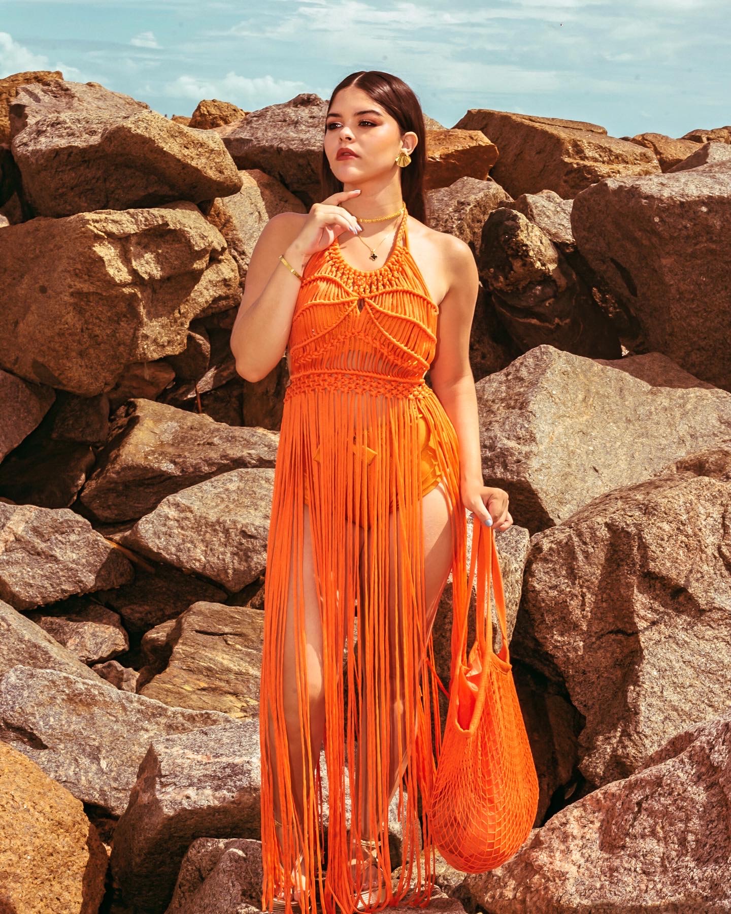 O vestido de macramê é uma peça atemporal e versátil que combina beleza natural com estilo boho chic. Confeccionado com nós elaborados que criam padronagens únicas, o vestido de macramê é perfeito para quem busca um look leve, fresco e feminino.